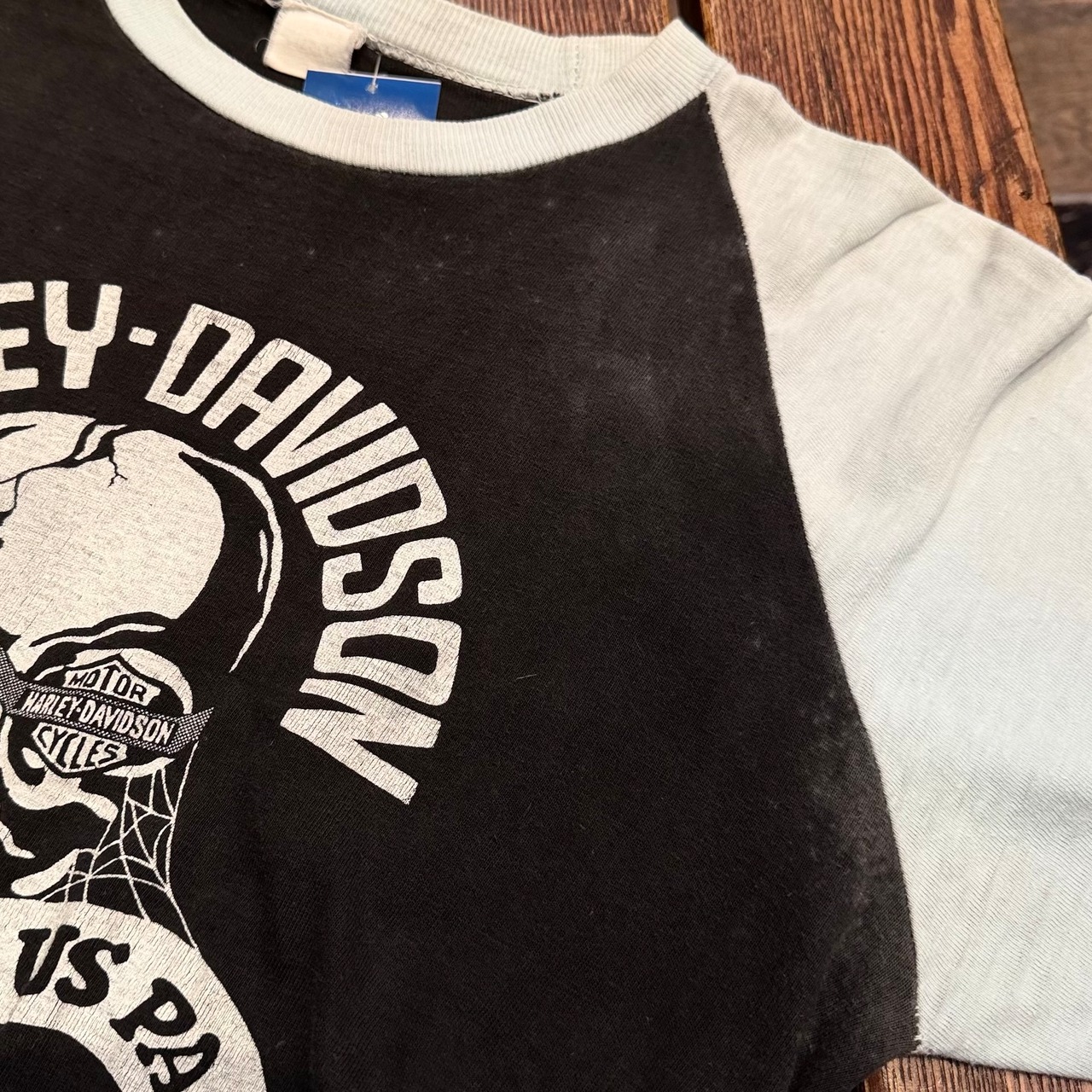 1980s H-D SKULL RAGLAN T-SHIRT , Size L