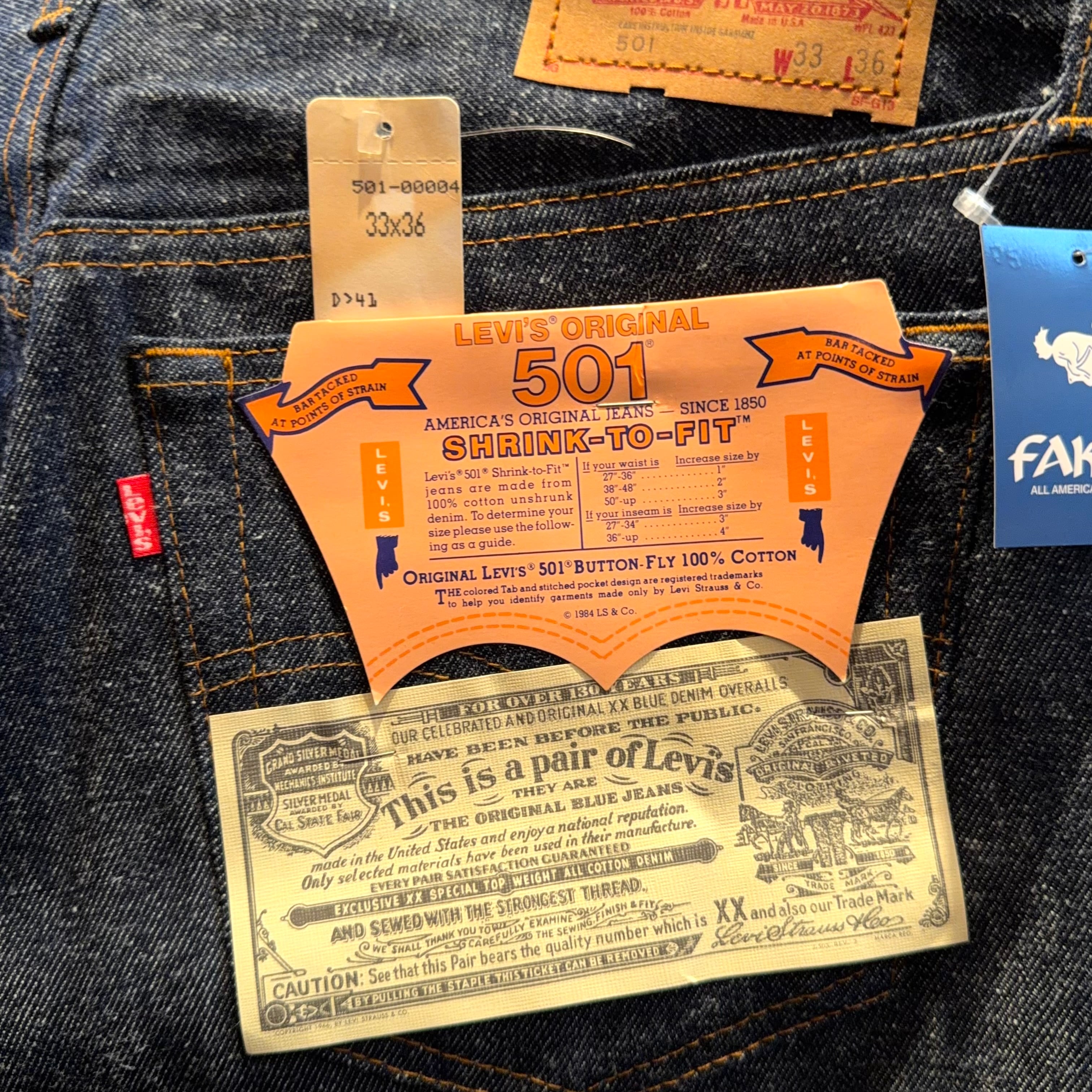 1980s DEAD STOCK 501 CARE STAMP , Size 33 × 36